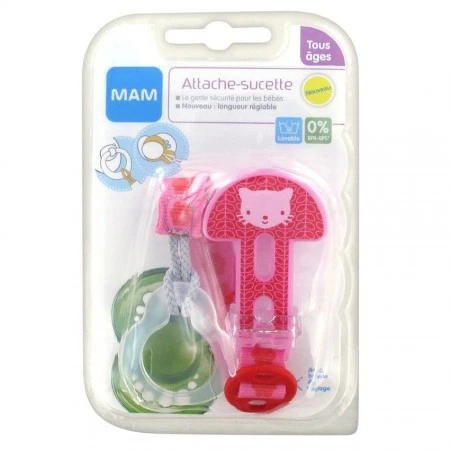 Cette attache se fixe facilement aux poches, cols ou revers des vêtements de bébé. Très pratique, cette attache s’adapte à toutes formes de sucettes (avec ou sans anneau), anneaux de dentition et autres. Facile à utiliser, quelques secondes suffisent pour l’accrocher à un vêtement.
