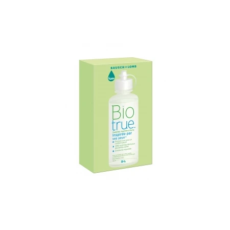 La solution multifonctions Biotrue hydrate vos yeux d`une façon naturelle car elle utilise un lubrifiant déjà présent dans les yeux et a un pH équilibré qui correspond parfaitement à celui des larmes.