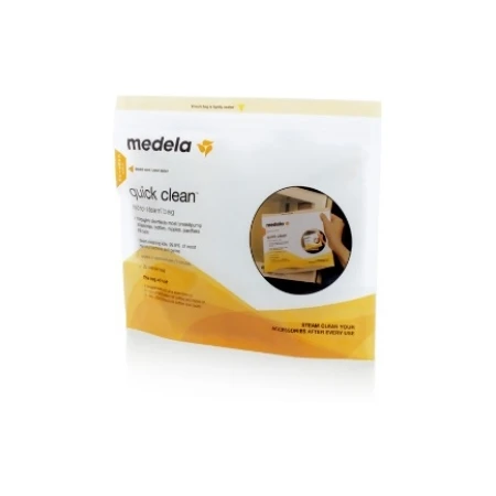 Les sachets “Quick clean” pour 100 stérilisations de Medela sont sûrs, rapides et pratiques. Avec les sachets pour micro-ondes Quick Clean de Medela, vous pouvez désinfecter les accessoires d’allaitement tels que les biberons et les téterelles en moins de trois minutes, et seulement trois étapes. Cela rend la stérilisation plus rapide et plus facile qu’à l’eau bouillante.